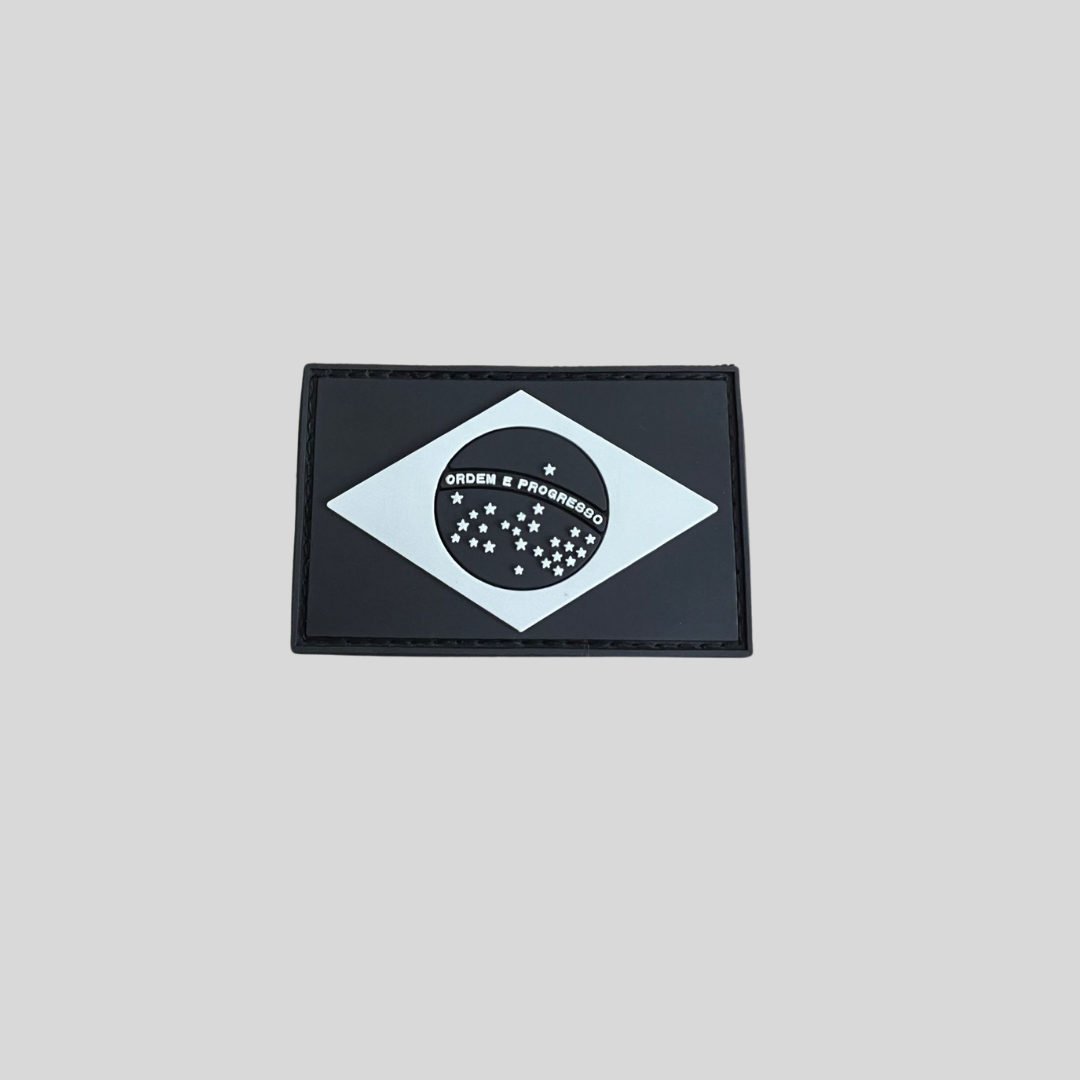 Patch emborrachado da bandeira do Brasil em preto e branco.